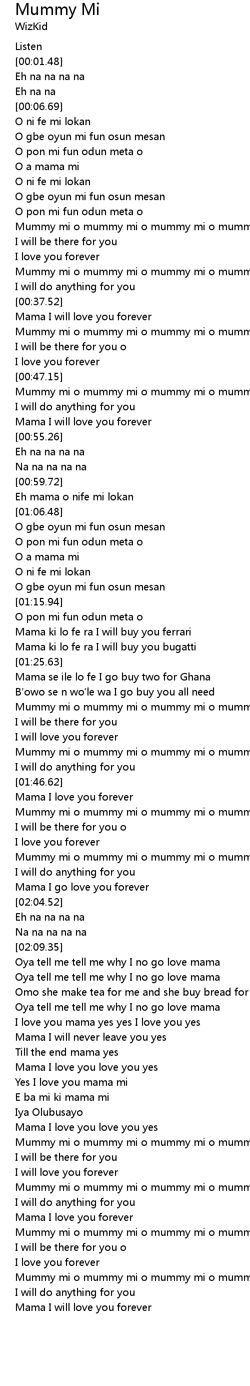 | [02:23.71] | Oya tell me tell me why I no go love mama |