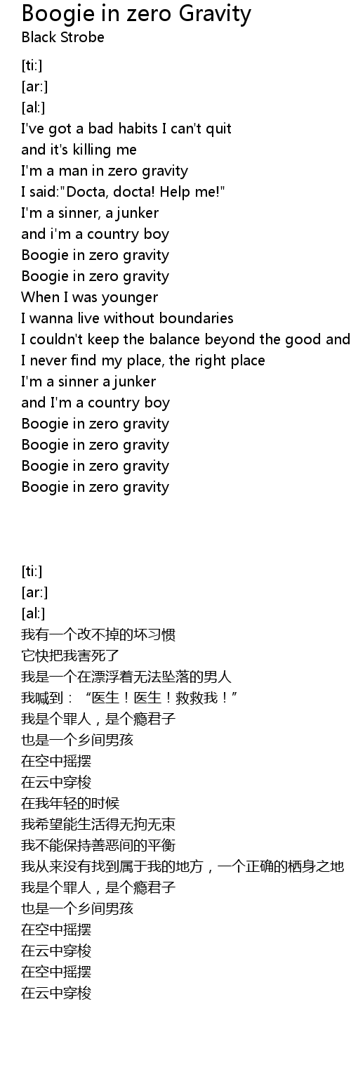 Boogie in zero gravity |