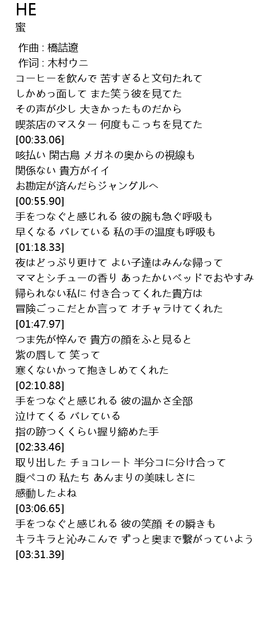 | [00:01.00] | 作词 : 木村ウニ |