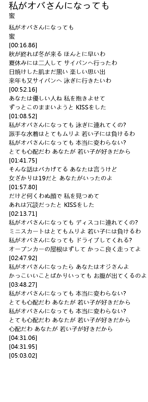 | [00:00.52] | 私がオバさんになっても |