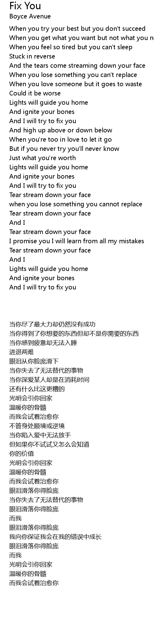 And I will try to fix you |