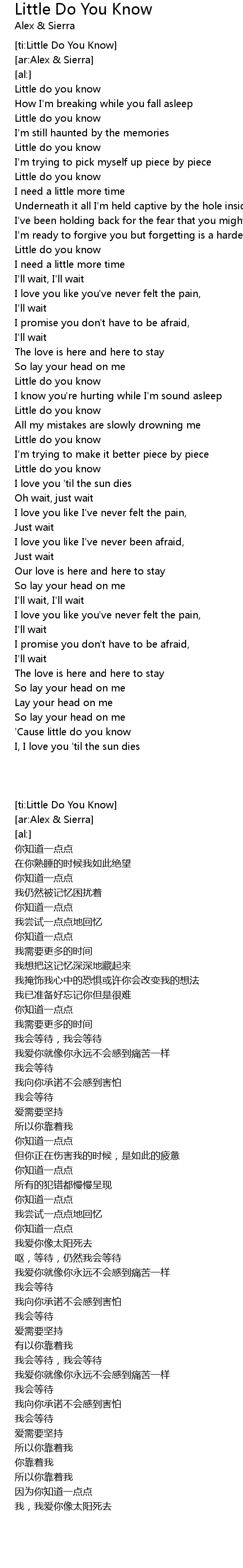[ti:Little Do You Know] |