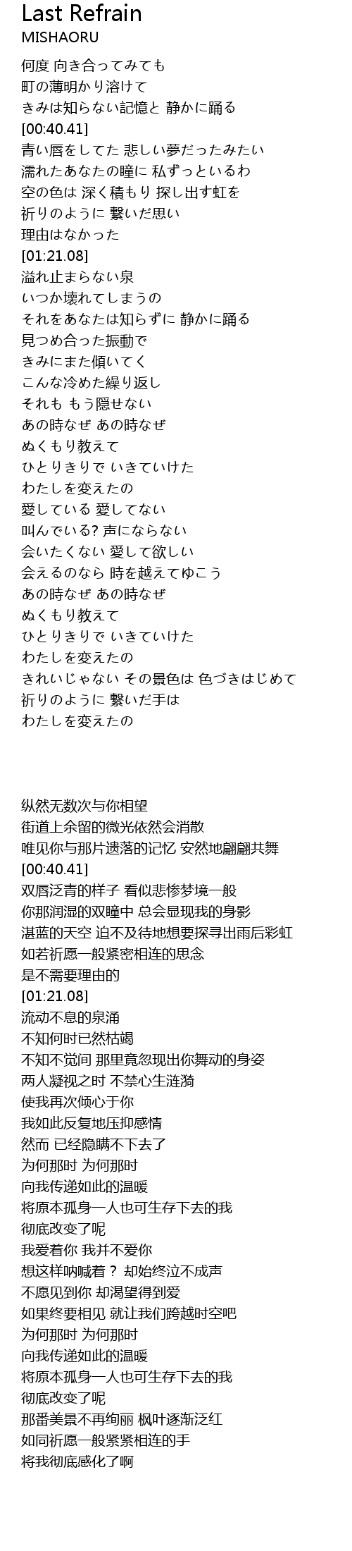 | [00:41.51] | 青い唇をしてた 悲しい夢だったみたい |