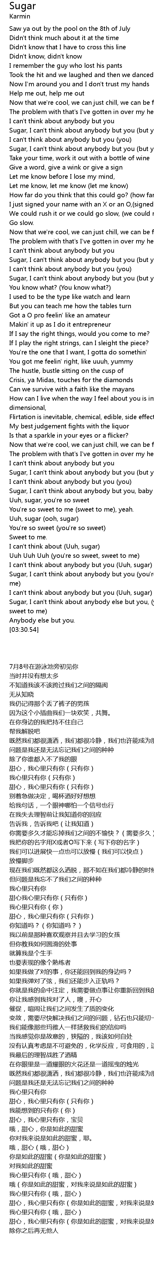 | [02:58.70] | I can't think about (Uuh, sugar) |