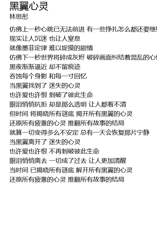 | 当时间 已揭晓所有谜底 解开所有黑翼的心灵 | |