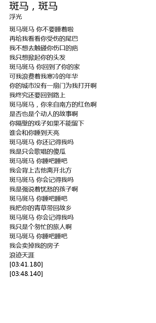| [03:24.630] | 斑马斑马 你睡吧睡吧 |