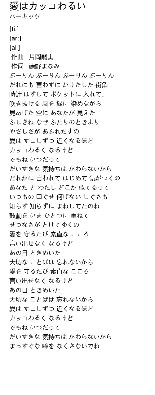 | [00:01.00] | 作词 : 藤野まなみ |