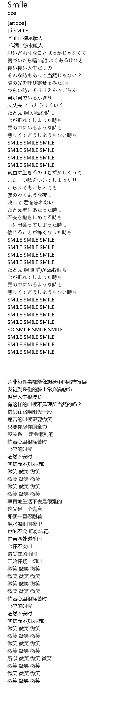 | [02:01.26] | SMILE SMILE SMILE |