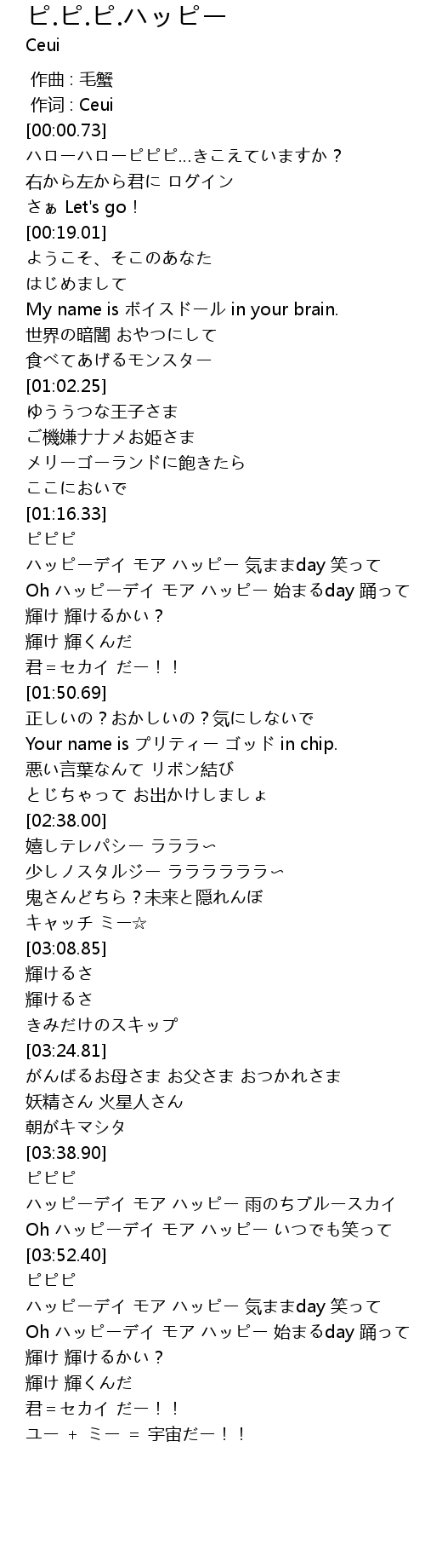 | [03:53.27] | ハッピーデイ モア ハッピー 気ままday 笑って |