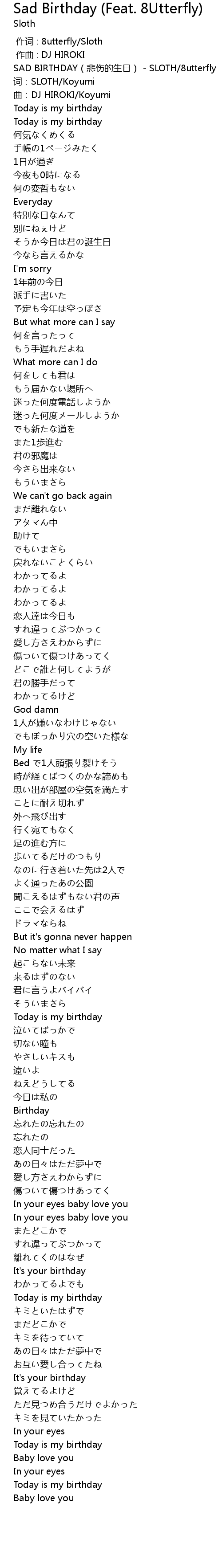 | [00:00.281] | SAD BIRTHDAY bēi shāng de shēng rì SLOTH 8utterfly |