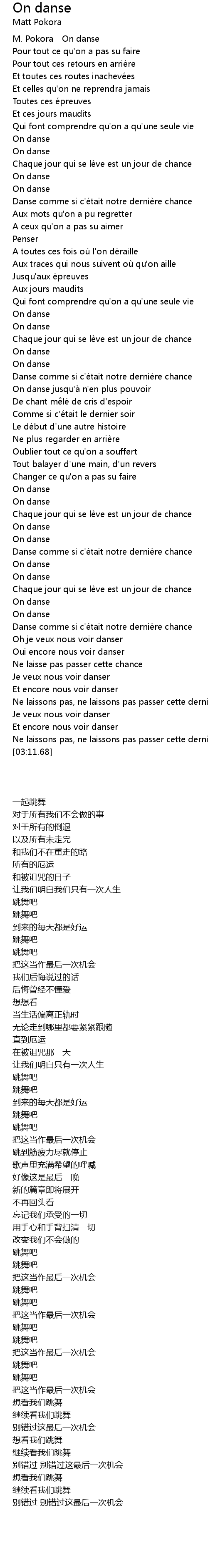 | [00:00.20] | M. Pokora On danse |