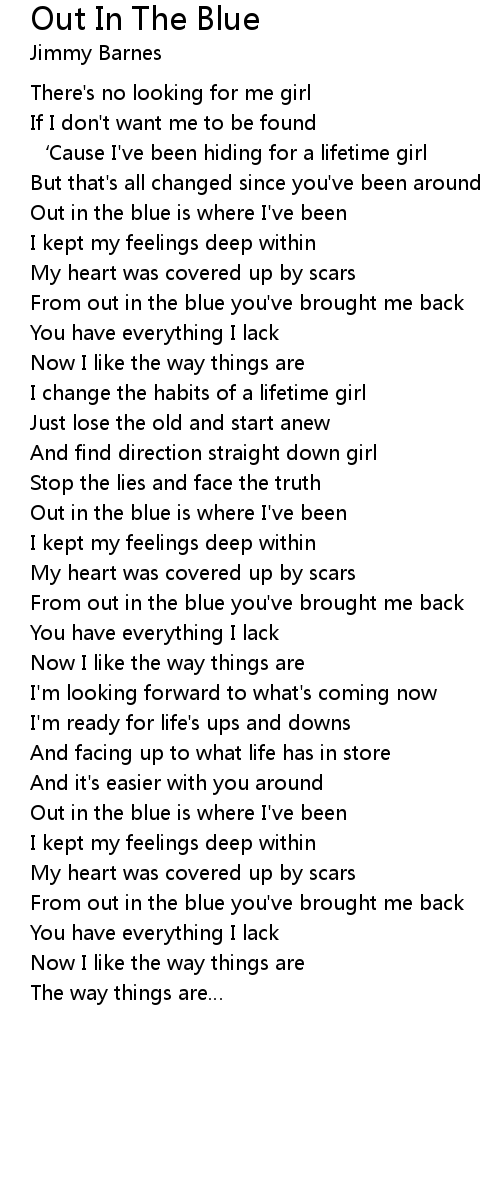 | Out in the blue is where I' ve been | |