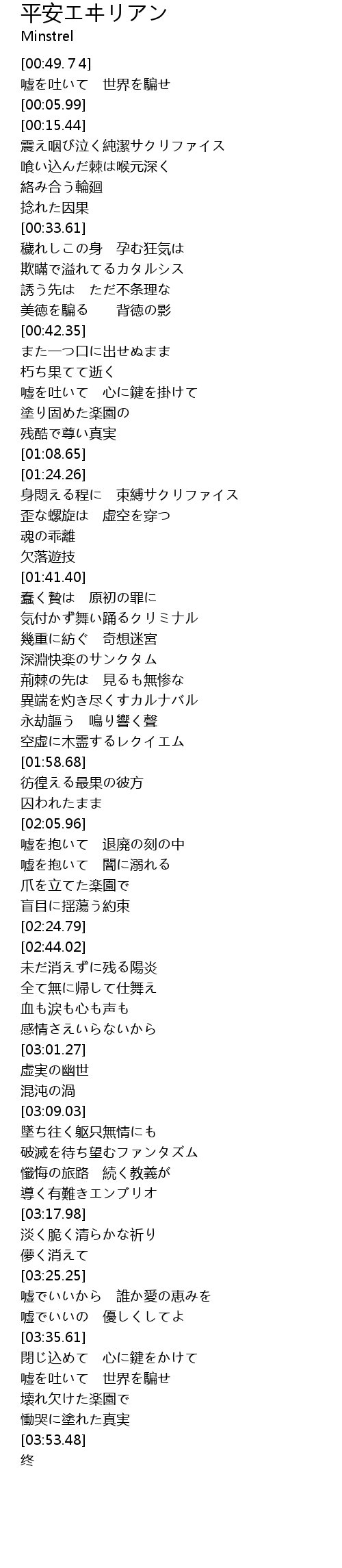 | [00:55.74] | 嘘を吐いて 世界を騙せ |