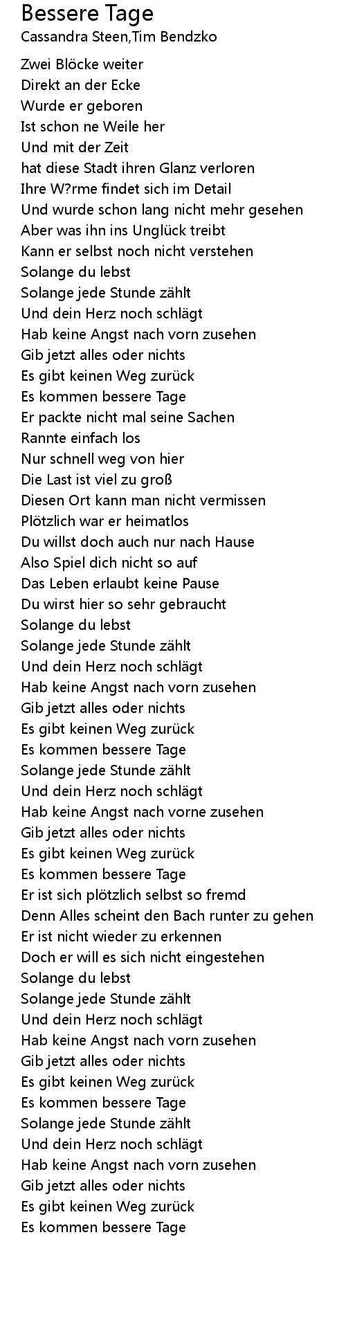| [01:44.00] | Das Leben erlaubt keine Pause |