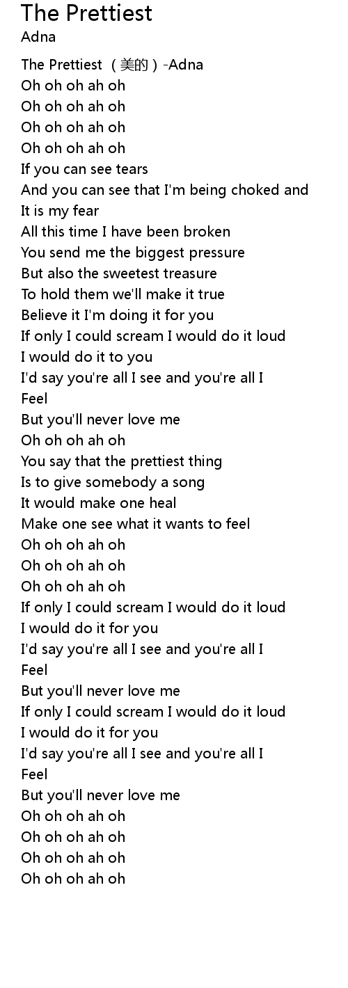 | [00:00.00] | The Prettiest (美的)-Adna |