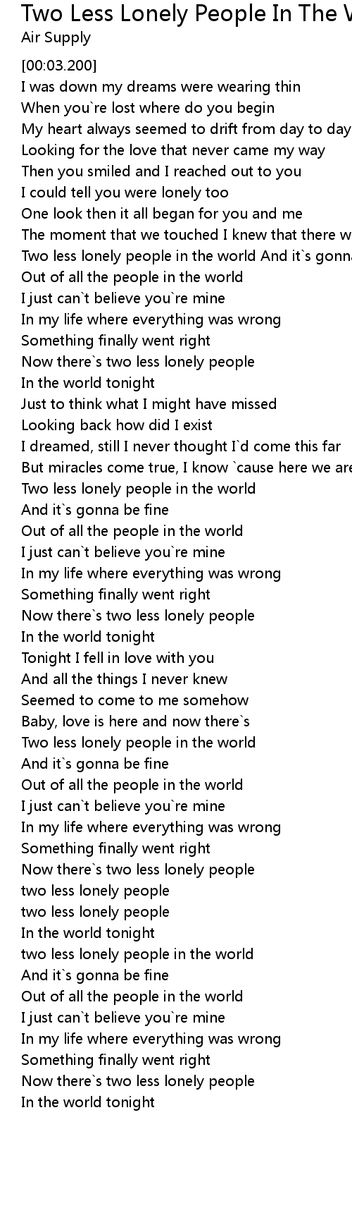 Song Two Less Lonely People In The World