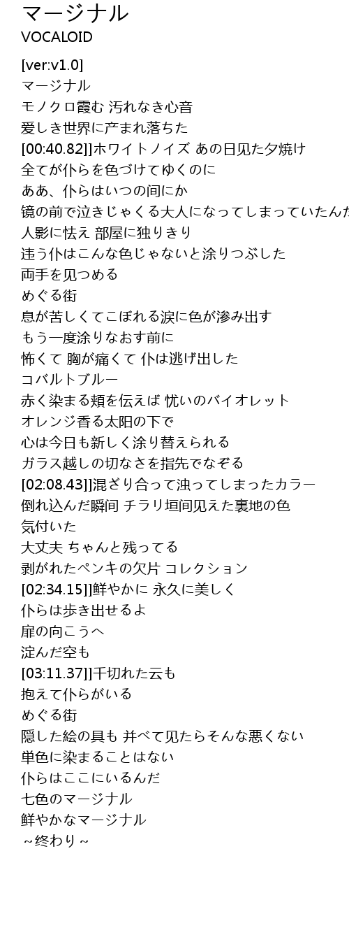 | [03:38.55] | 七色のマージナル |