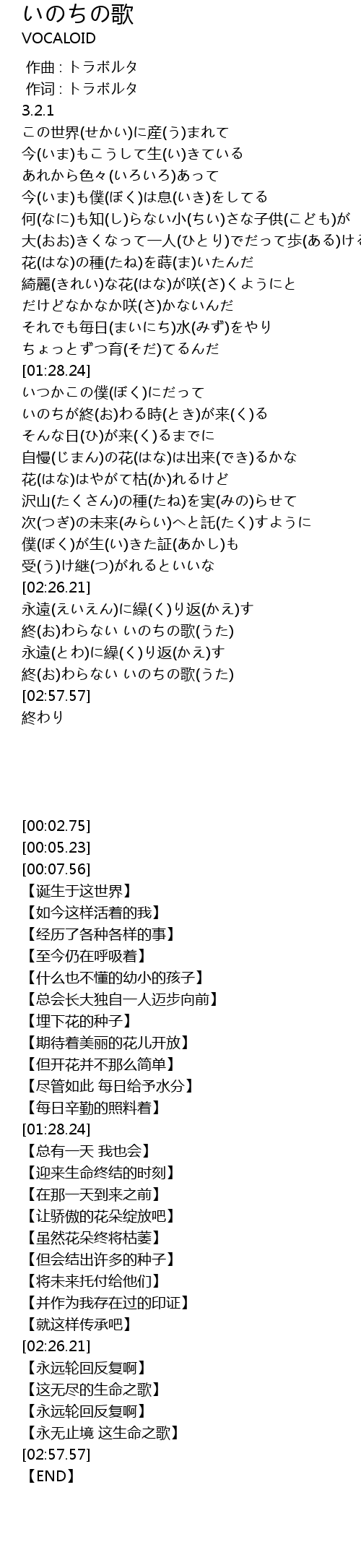 | [02:37.40] | 終(お)わらない いのちの歌(うた) |