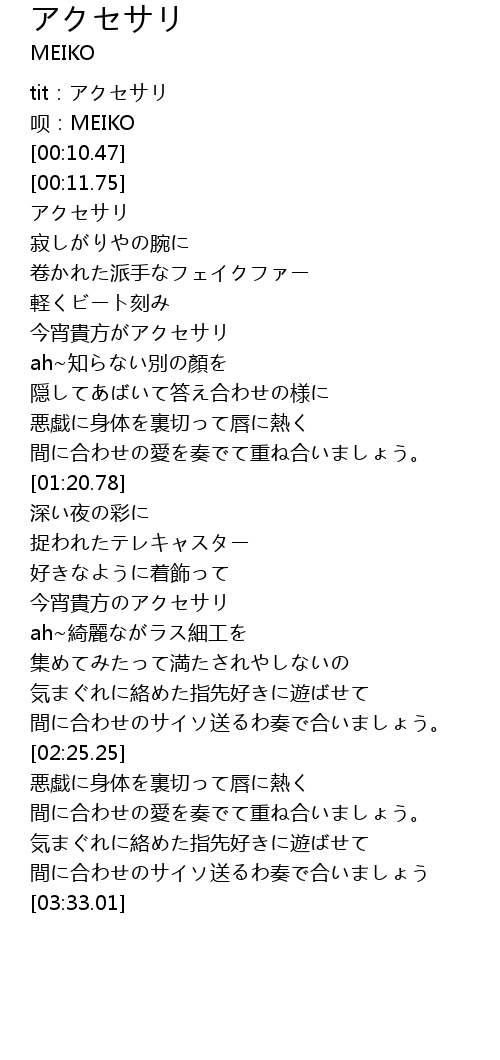 | [00:01.19] | tit:アクセサリ |