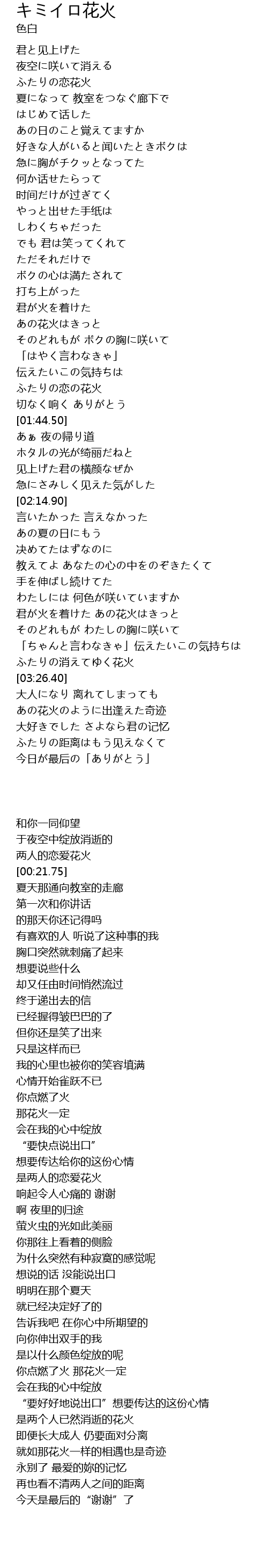 | [03:02.39] | 君が火を着けた あの花火はきっと |
