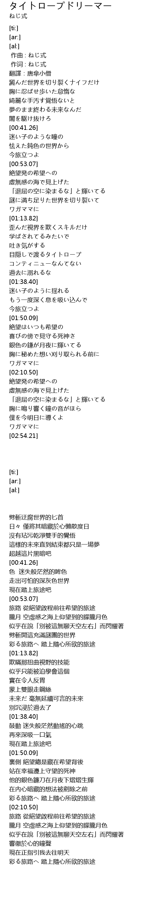 | [00:01.00] | 作词 : ねじ式 |