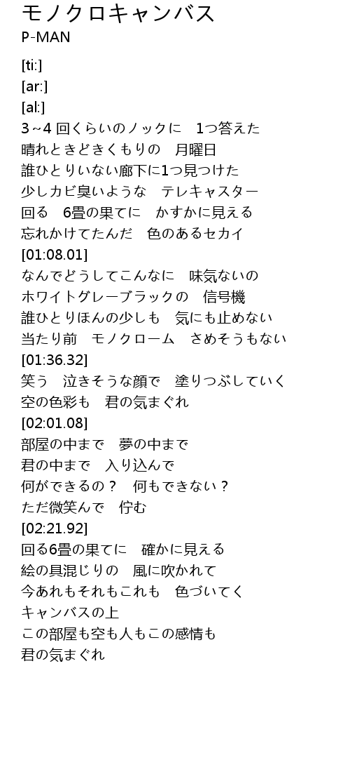 | [01:31.65] | 当たり前 モノクローム さめそうもない |
