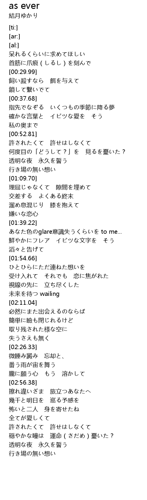 | [00:26.60] | 首筋に爪痕(しるし)を刻んで |