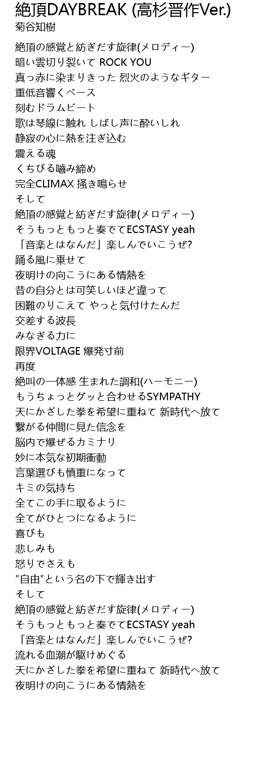 | Song | 絶頂DAYBREAK (高杉晋作Ver.) |