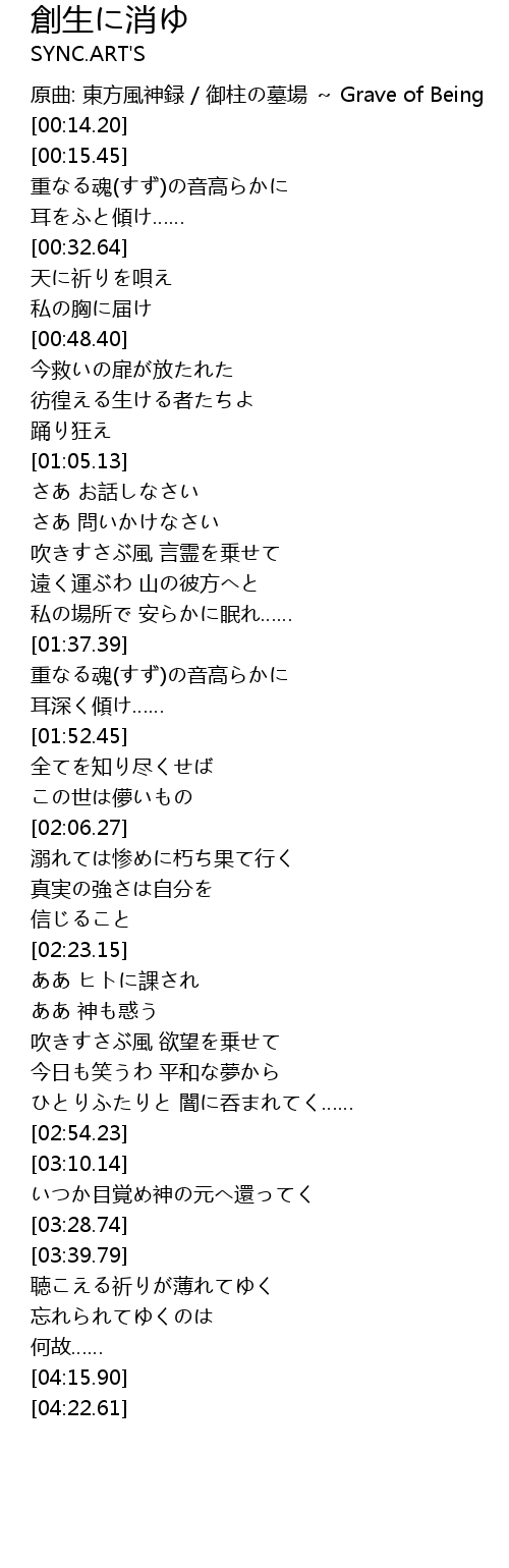 | [03:17.17] | いつか目覚め神の元へ還ってく |