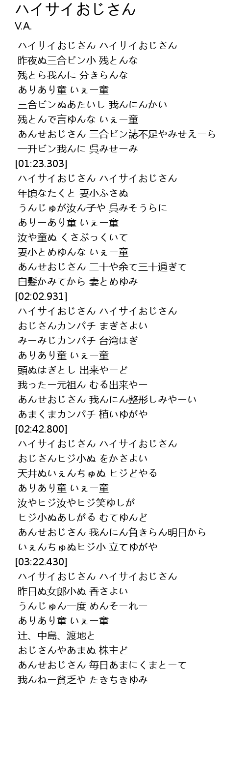 | [02:47.064] | ハイサイおじさん ハイサイおじさん |