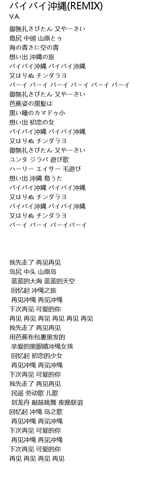 | [00:46.24] | バイバイ沖縄 バイバイ沖縄 |