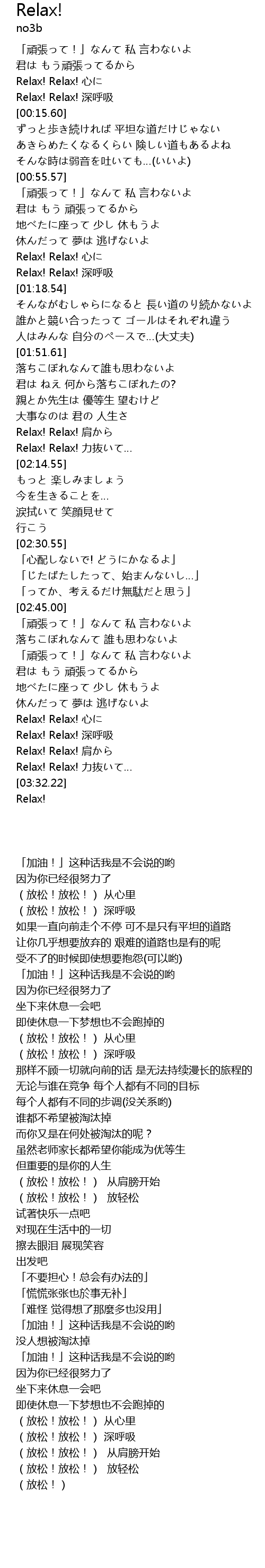 | [03:16.70] | Relax! Relax! xīn |