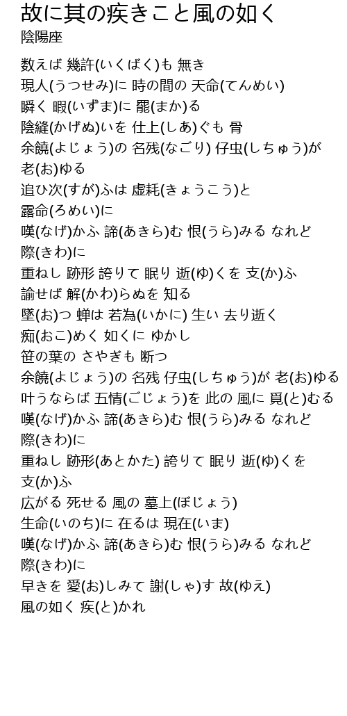 | [04:32.39] | 風の如く 疾(と)かれ |