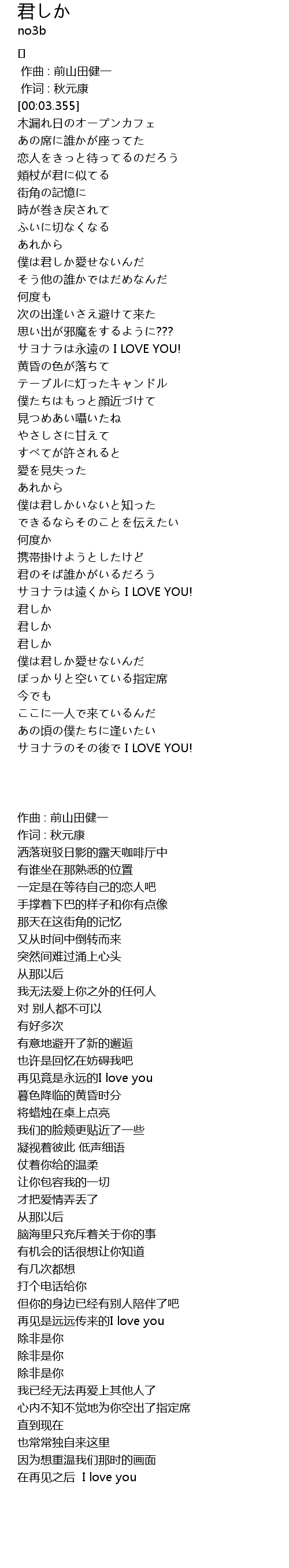 | [03:35.998] | 君しか |