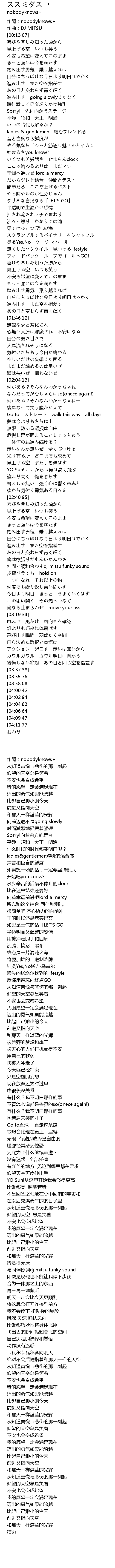 | [00:07.07] | 作詞:nobodyknows+ |