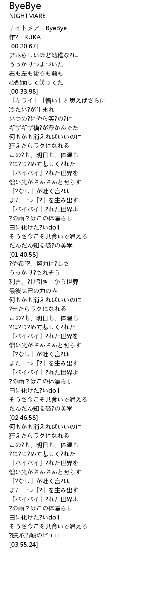 | [03:22.61] | ?に?じ?めて悲しく?れた |