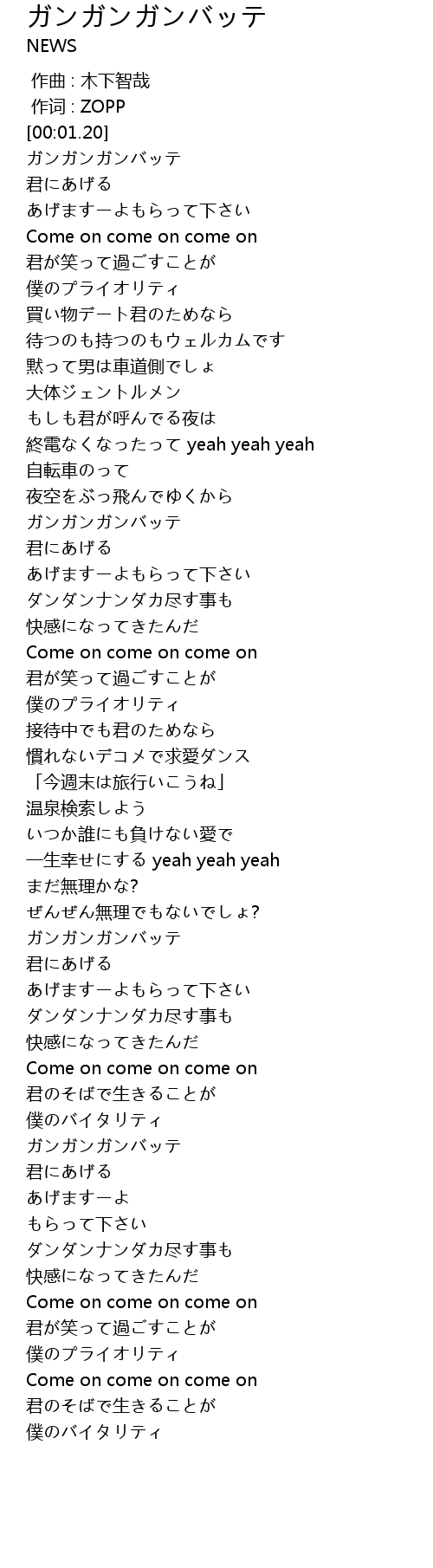 | [00:08.73] | ガンガンガンバッテ |