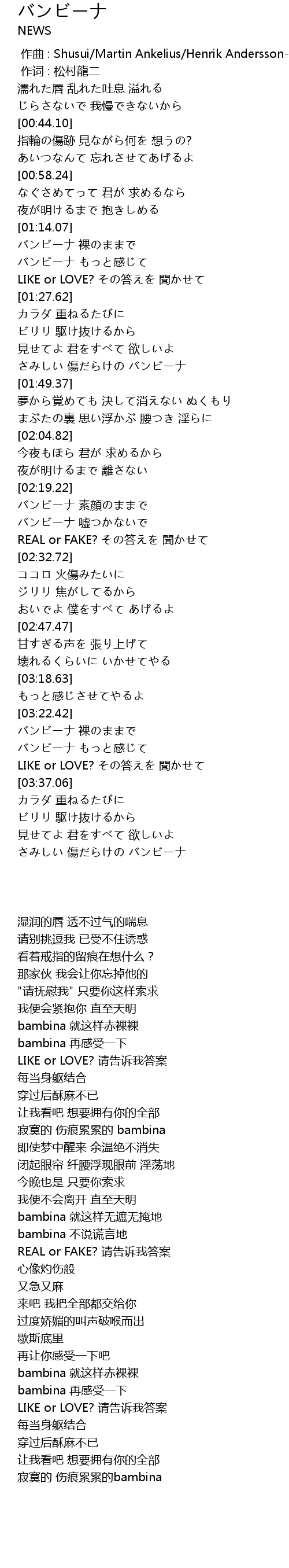 | [02:24.85] | バンビーナ 嘘つかないで |
