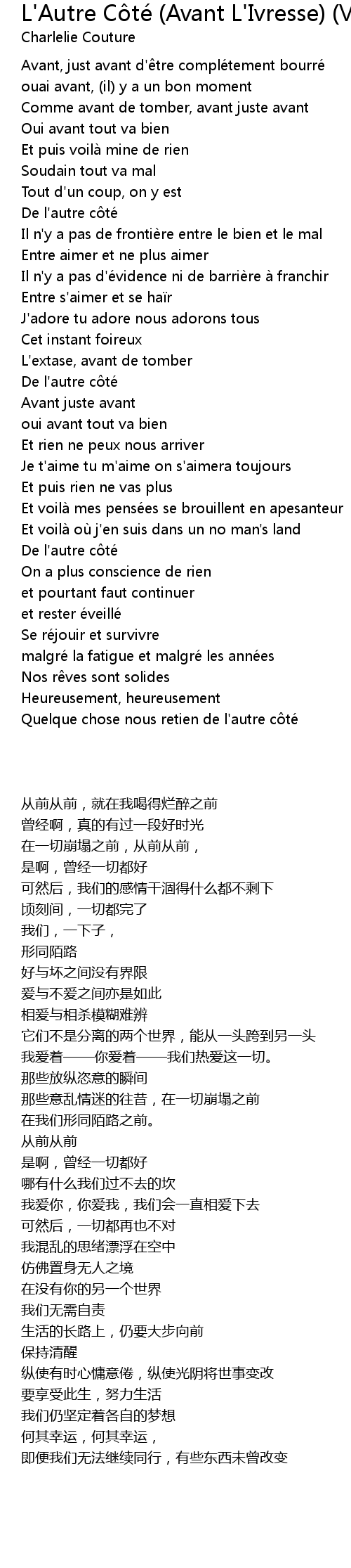 | Song | L'Autre Côté (Avant L'Ivresse) (Version Acoustique) |