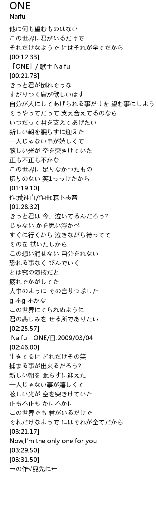| [02:27.57] | : Naifu ONE ri: 2009 03 04 |