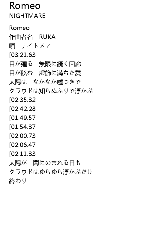 | [00:22.35] | 目が廻る 無限に続く回廊 |