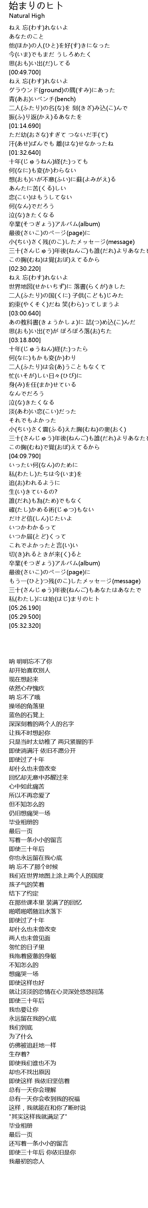 | [05:05.840] | もう一(ひと)つ残(のこ)したメッセージ(message) |