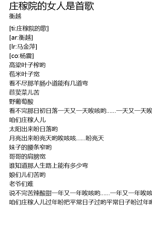 | [01:53.713] | 说不完苦辣酸甜一年又一年唉咳哟……一年又一年唉咳哟……哟一天又一天 |