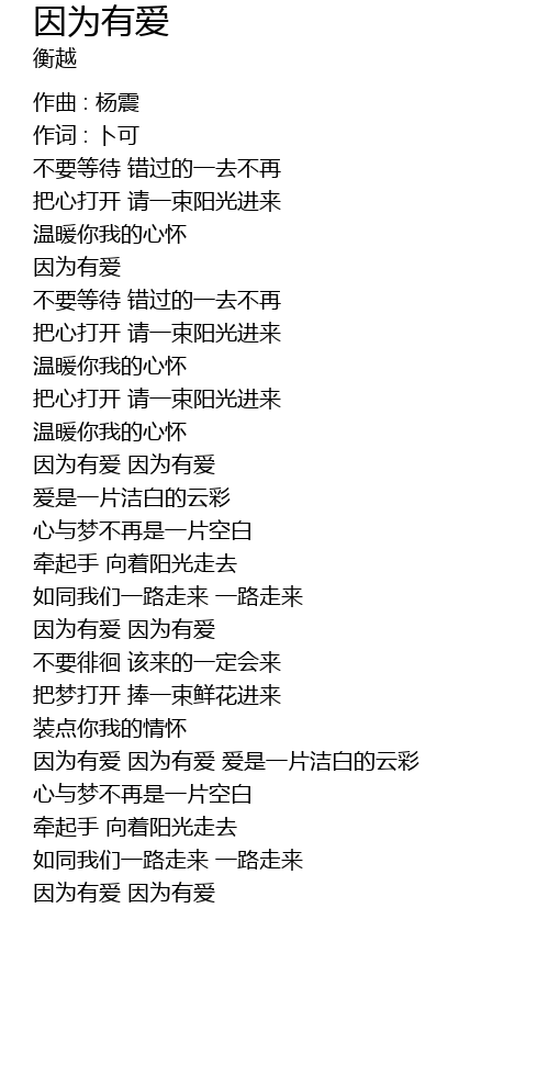 | yīn wèi yǒu ài yīn wèi yǒu ài ài shì yī piàn jié bái de yún cǎi | |