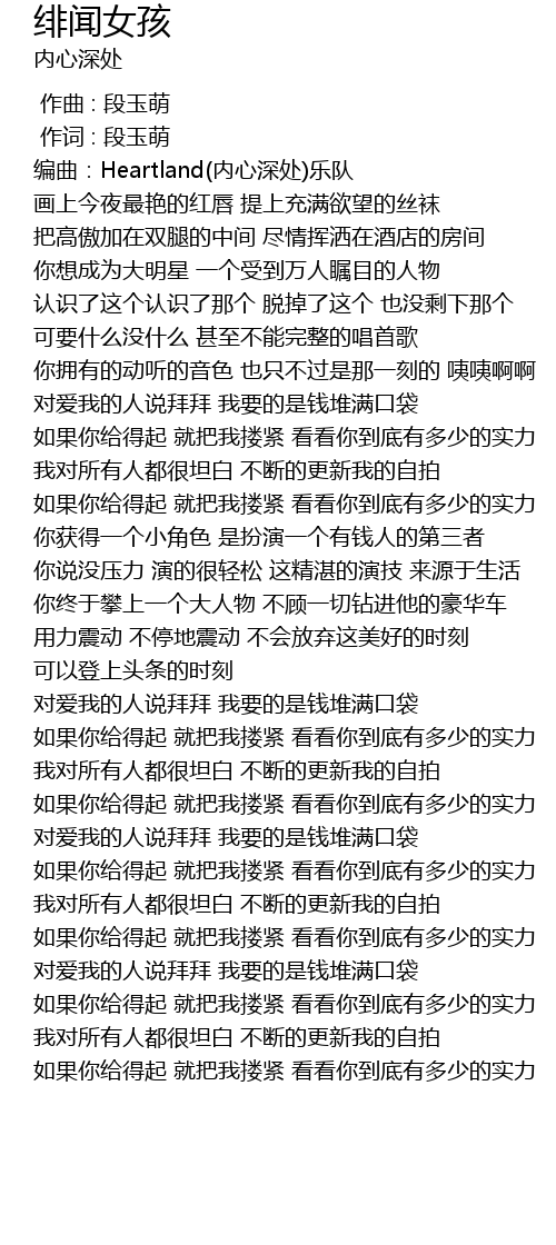 | [00:08.53] | 编曲:Heartland(内心深处)乐队 |