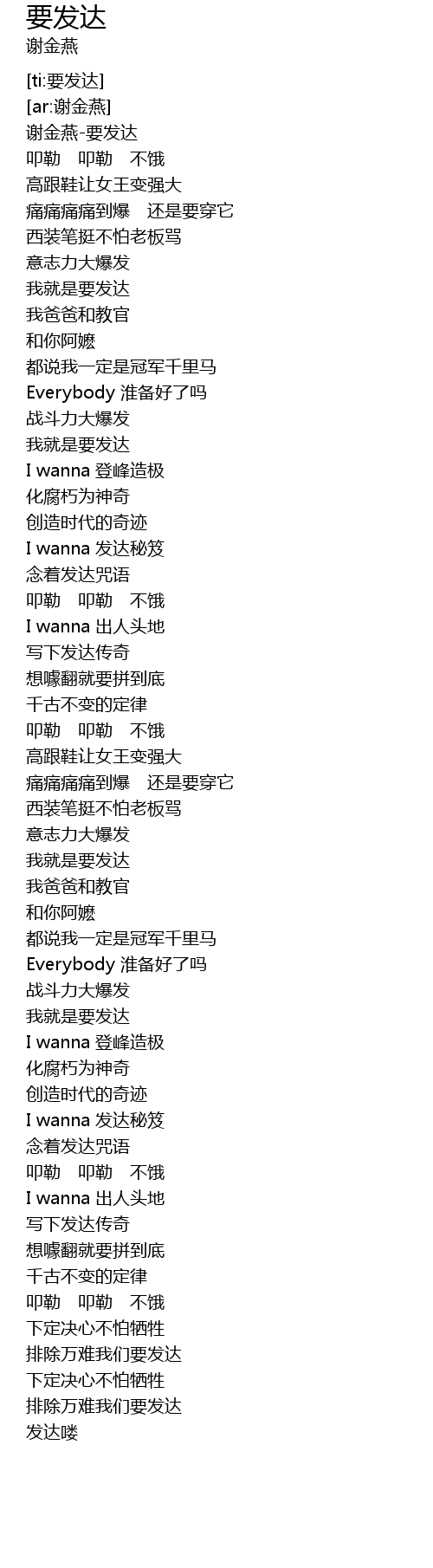 | [00:00.263] | 谢金燕-要发达 |