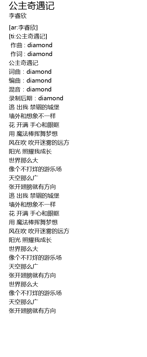 | [00:01.37] | gōng zhǔ qí yù jì |