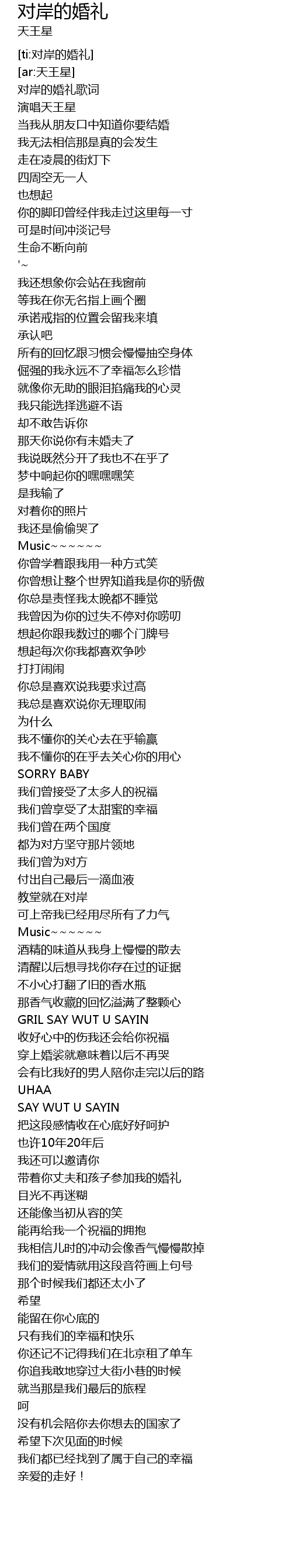 | [00:03.160] | duì àn de hūn lǐ gē cí |