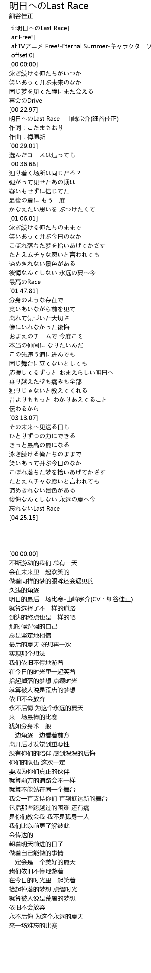 | [00:23.55] | ming ri Last Race shan qi zong jie xi gu jia zheng |