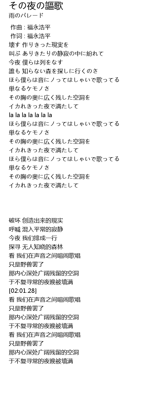 | [01:04.36] | 誰も 知らない森を探しに行くのさ |